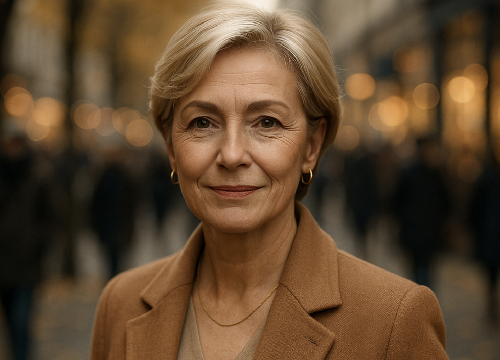 Nadya walked between the tables. A new dress, blue, fitted. Heels. Her hair styled, makeup neat. She felt confident.