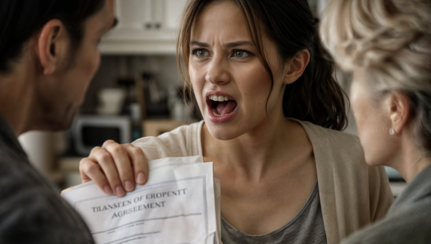 Ksenia grabbed the stack of documents from the table—the loan agreement, purchase agreement, certificates, statements—everything. She looked at her husband, at her mother-in-law, at the notary. Then she tore the documents in half.