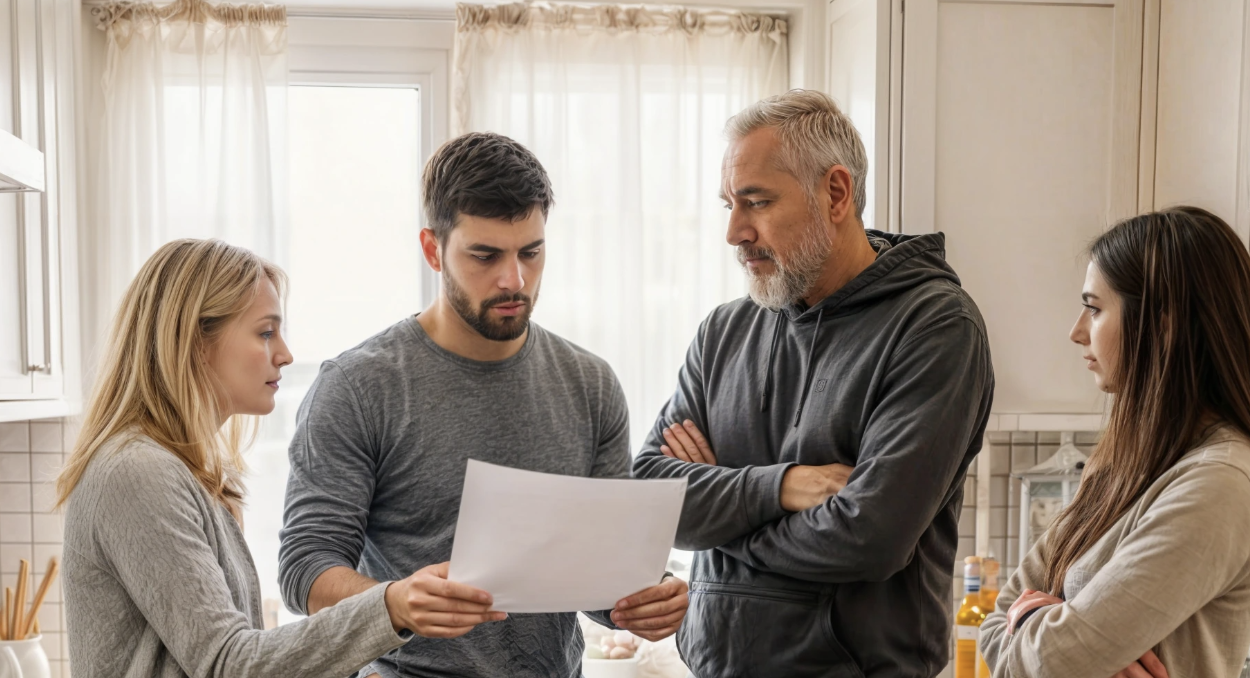 The next day she found an envelope in the mailbox. Gray, no stamps. She opened it at home while everyone was still asleep. Inside were copies of registration papers. Andrey had filed an application at the government service center, and it listed his parents, his brother, and his sister. Without her consent.