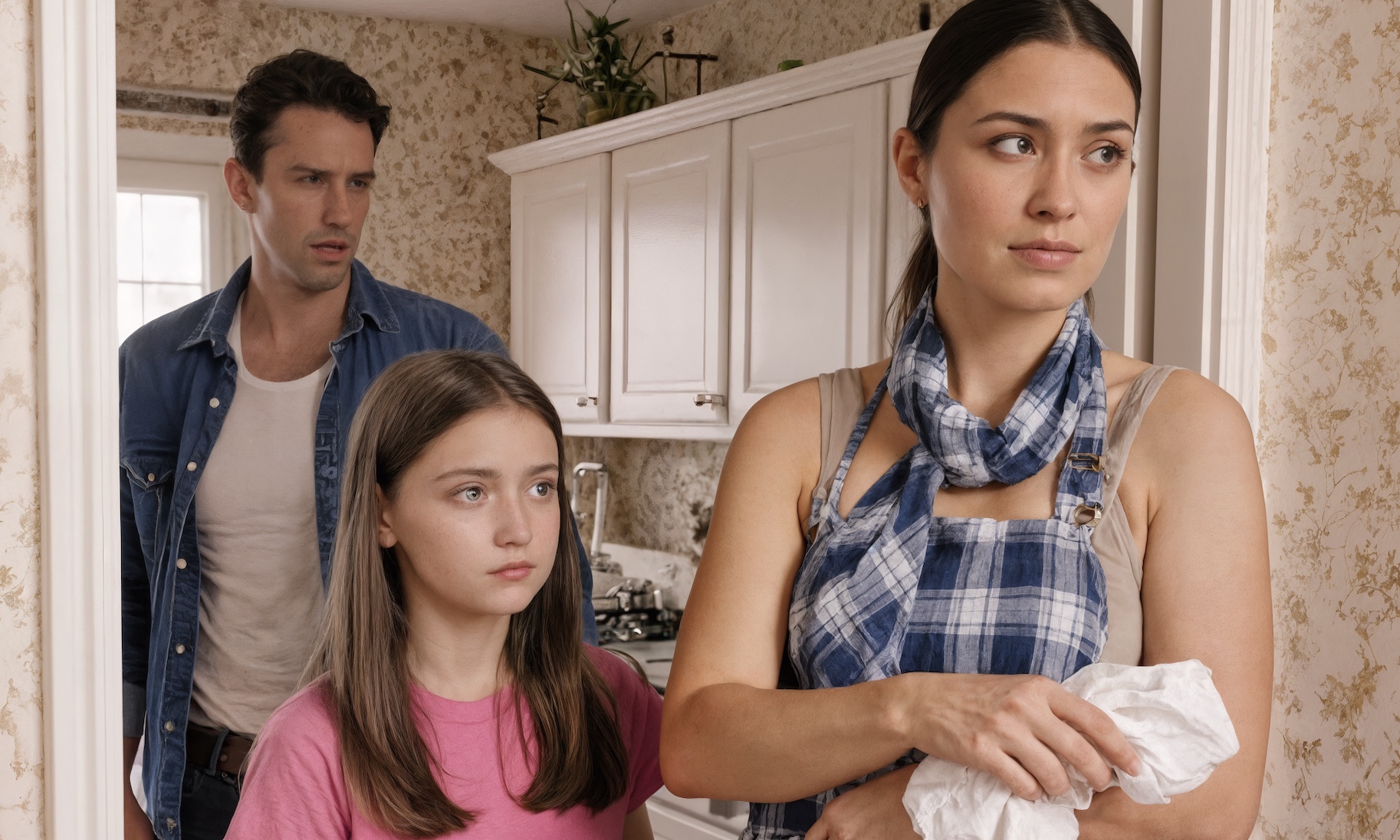 The voices from the kitchen fell silent. A second of stillness followed, then hurried footsteps. A woman around thirty-five appeared in the corridor—thin, with short chestnut hair and a face that seemed oddly familiar. Behind her hovered a girl of about ten, her mother’s exact double.