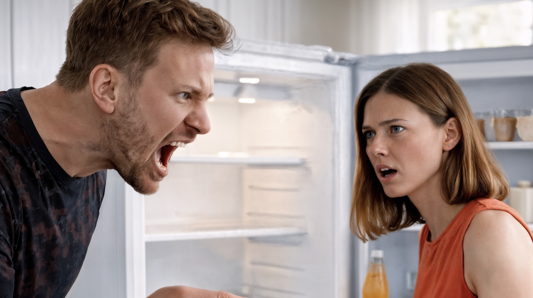 He slammed the fridge shut so violently Victoria flinched.