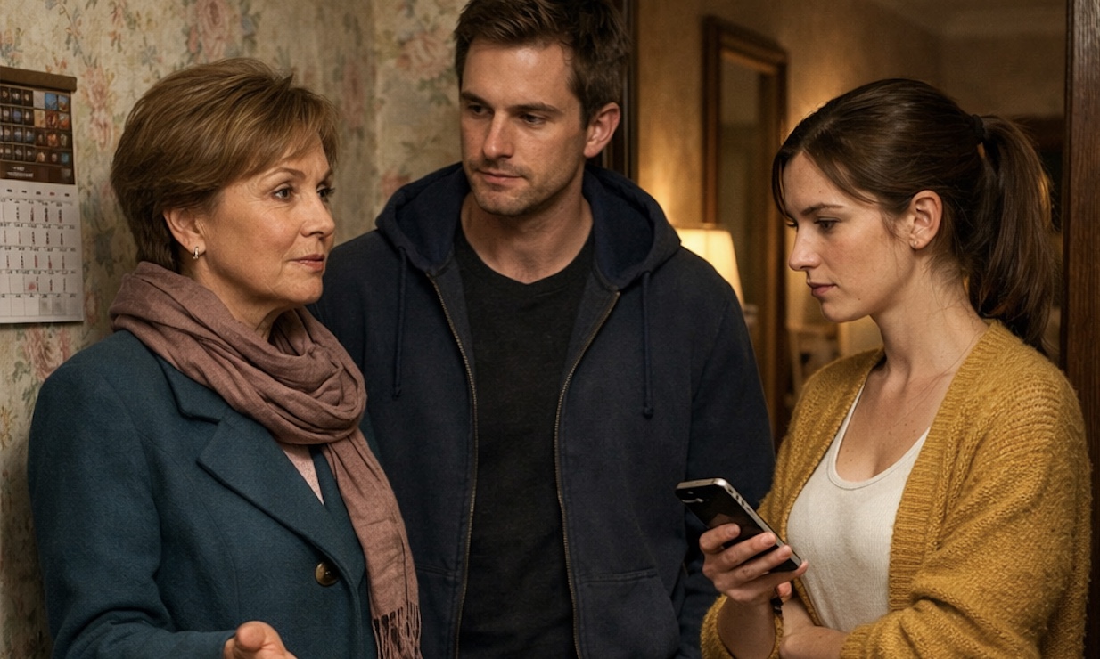 Olesya slipped on a cardigan, walked to the door, and pressed her eye to the peephole. On the landing, directly under a dim flickering bulb, stood two patrol officers in heavy jackets. Between them, nervously twisting the strap of an expensive leather handbag, shifted her mother-in-law, Antonina Sergeyevna.