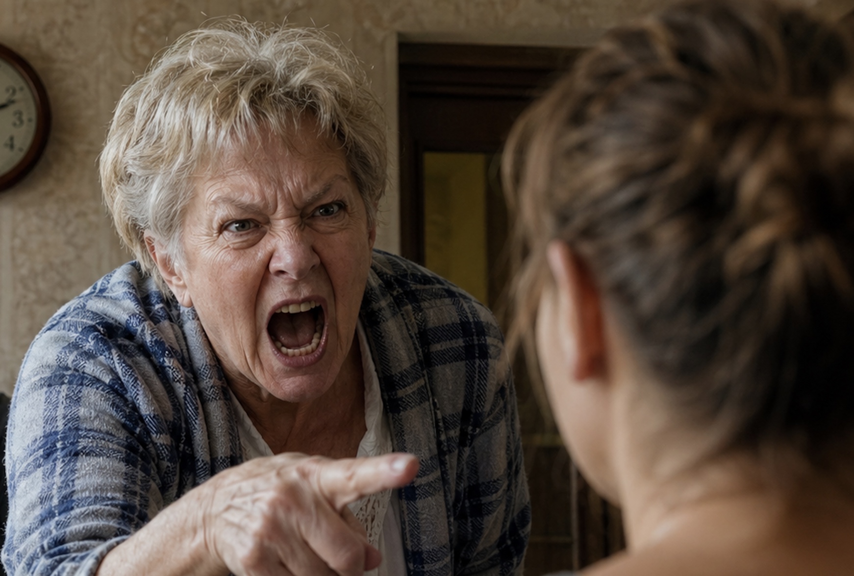 Her mother-in-law spun around and rushed upstairs. Heavy footsteps thundered above them, followed by the sounds of cupboard doors opening and furniture being dragged.